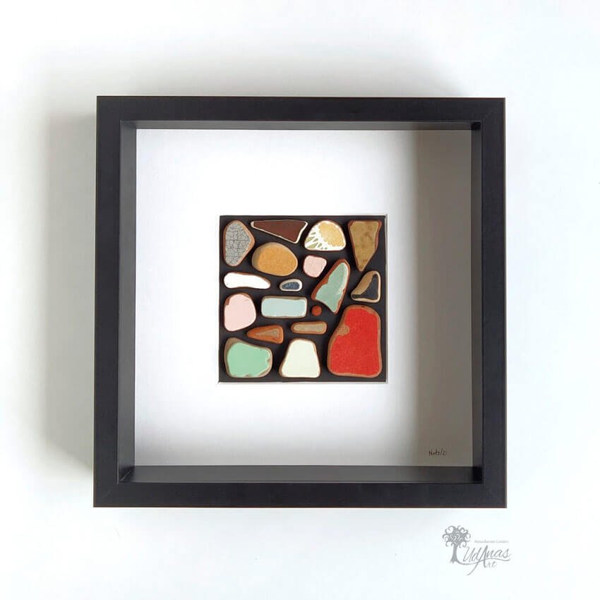 El cuadro con piedras «Alamak», pertenece a la serie Colores de Andrómeda. Mosaico hecho a mano en Barcelona con azulejos de diferentes colores.