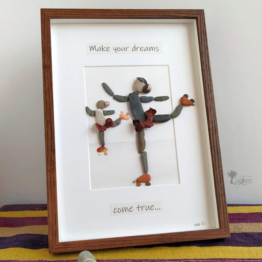 El cuadro con piedras «Make your dreams come true», está hecho a mano en Barcelona.