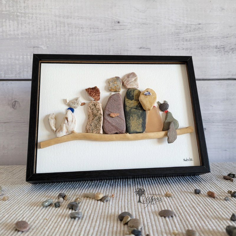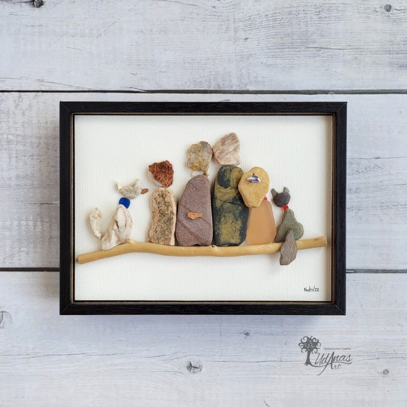 El cuadro con piedras «Familia Finlandia», personalizado, es el regalo perfecto para regalar a familias con niños y mascotas