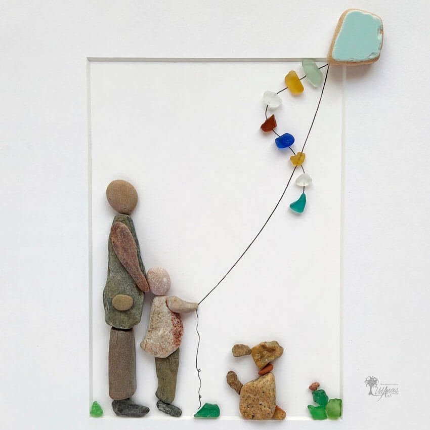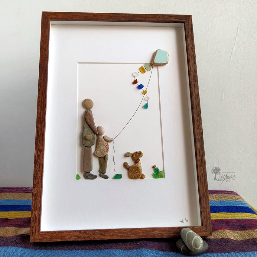 Este cuadro con piedras «La cometa azul» es ideal para una decoración infantil original o para regalar en el día del padre.