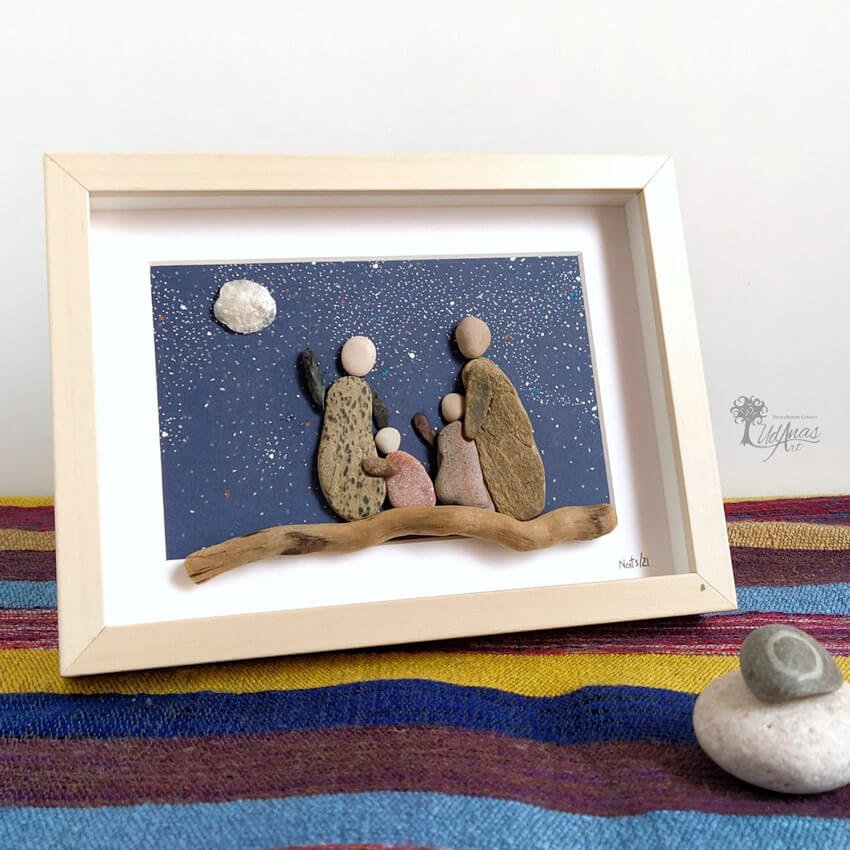 Este cuadro con piedras «Mirando la luna»