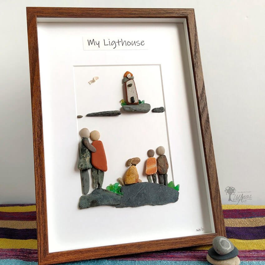 El cuadro con piedras «My lighthouse», está hecho a mano en Barcelona.