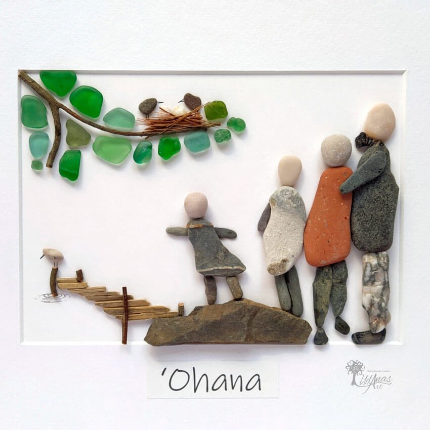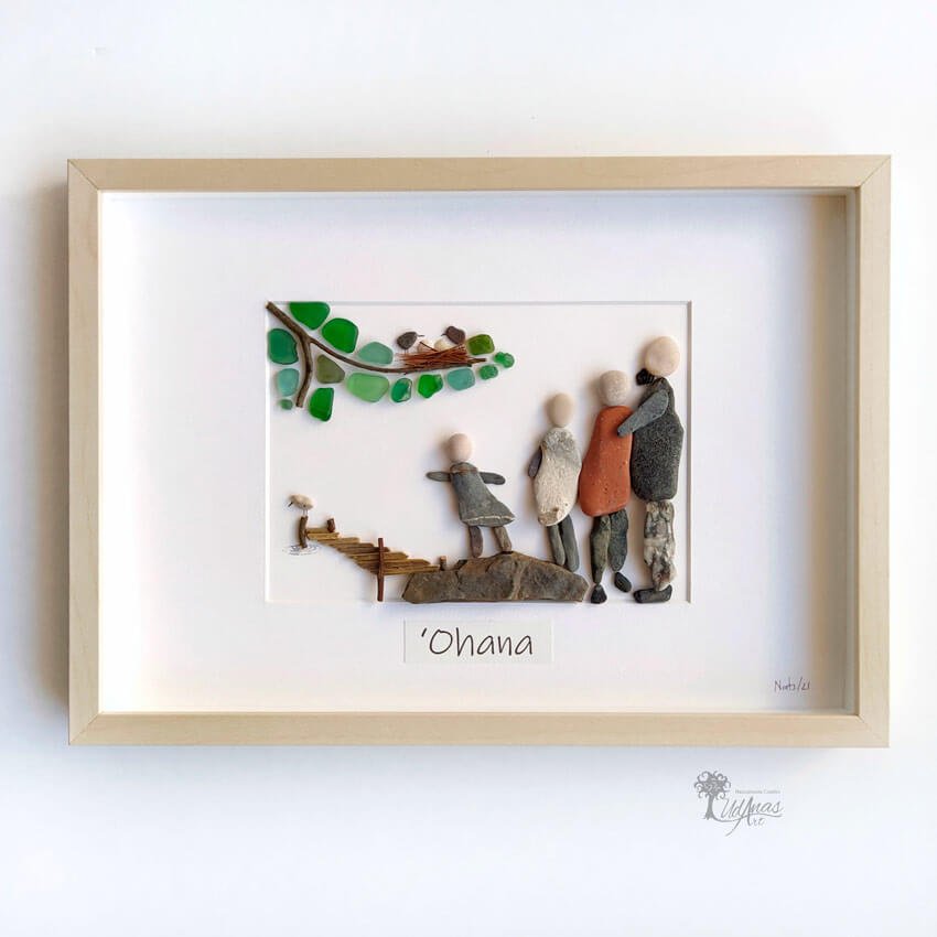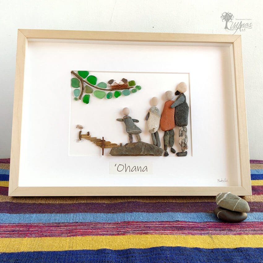 El cuadro con piedras «O’hana», está hecho a mano en Barcelona.