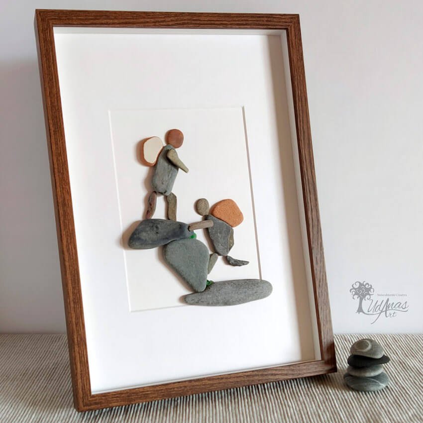 El cuadro con piedras «Por más aventuras juntos», está hecho a mano en Barcelona.