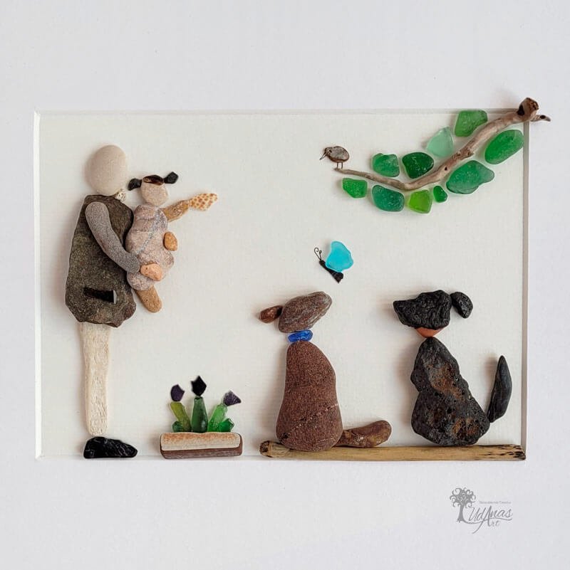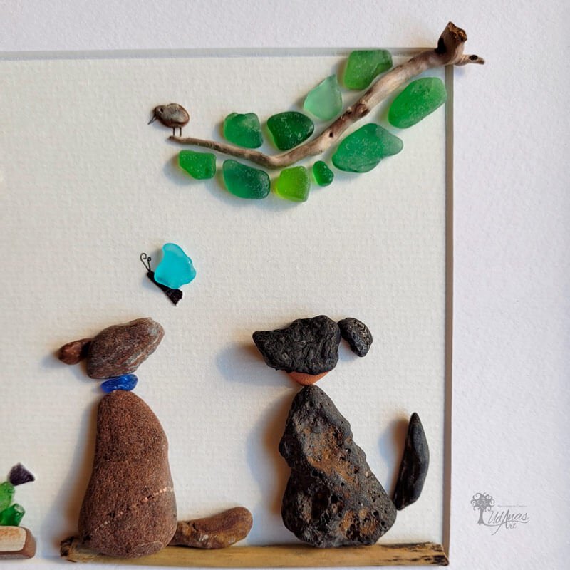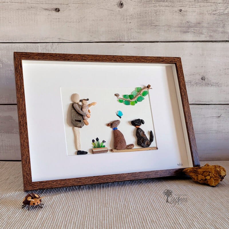El cuadro con piedras «Tardes bonitas con el abuelo», está hecho a mano en Barcelona.