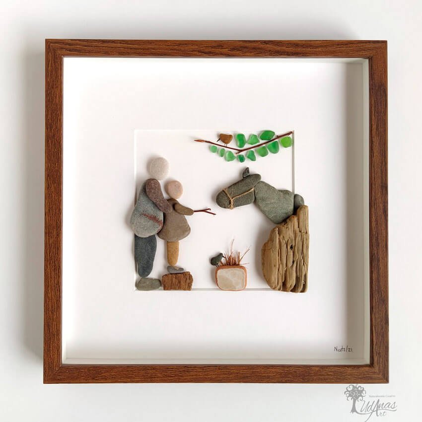 Este cuadro con piedras «Tardes con el abuelo»