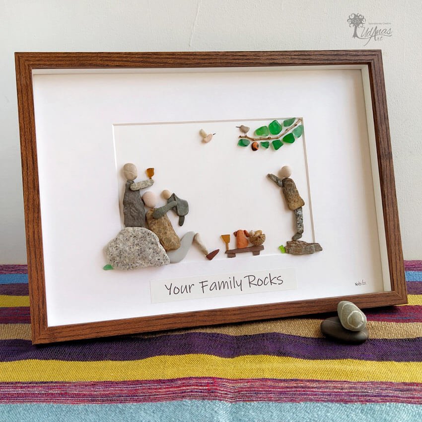Este cuadro con piedras «Your family rocks, celebrating life»