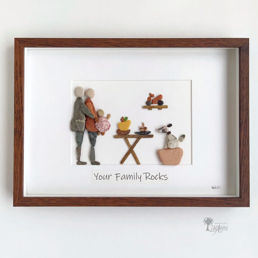 El cuadro con piedras «Your family rocks moto», está hecho a mano en Barcelona.