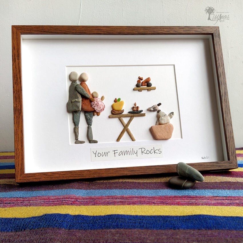 Este cuadro con piedras «Your family rocks moto»
