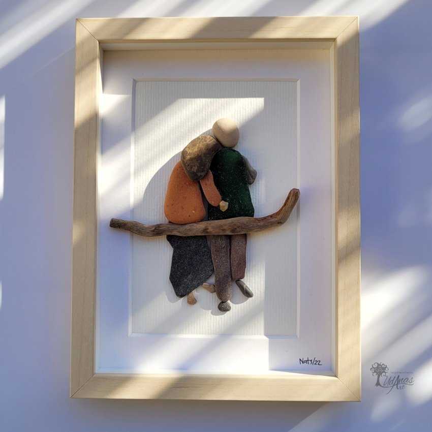 Cuadro con piedras «Tú y yo» ideal para decoración original del hogar o para regalar el día de los enamorados