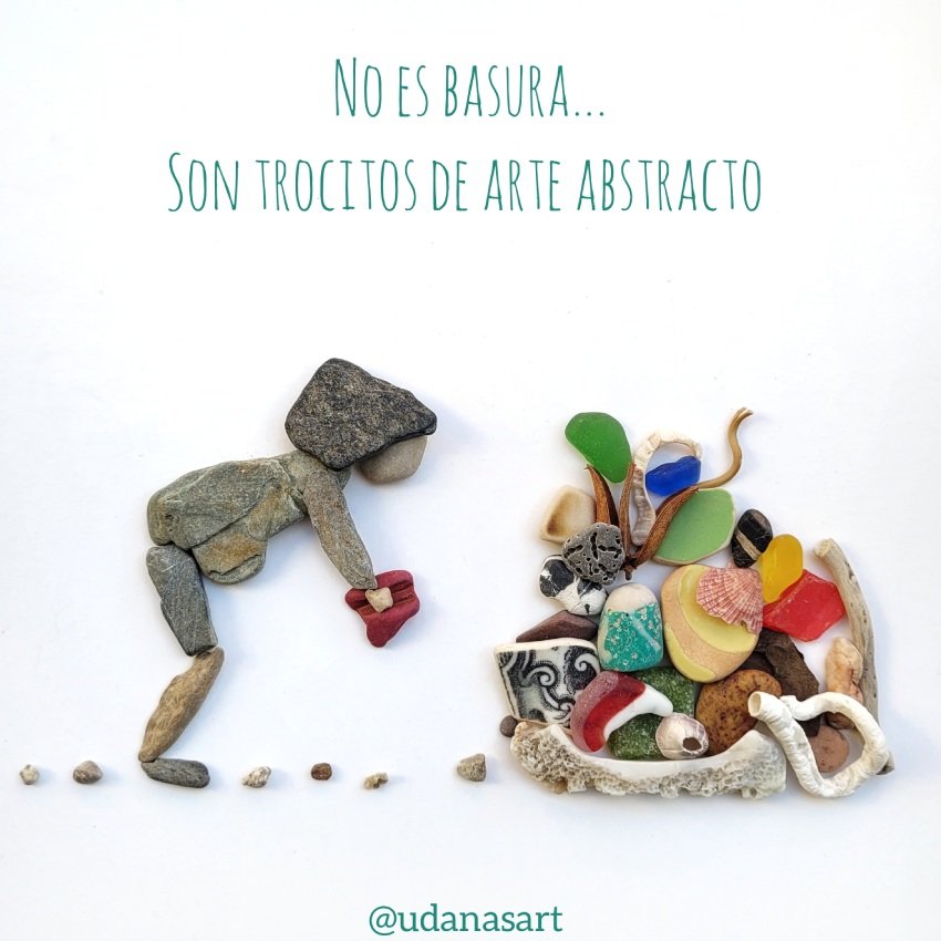 Frase motivadora con piedras No es basura, son trocitos de arte abstracto hecho a mano en Barcelona.