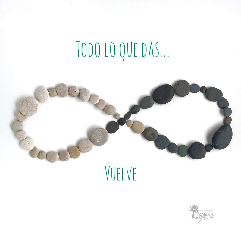 Frase motivadora con piedras Todo lo que das, vuelve hecho a mano en Barcelona.