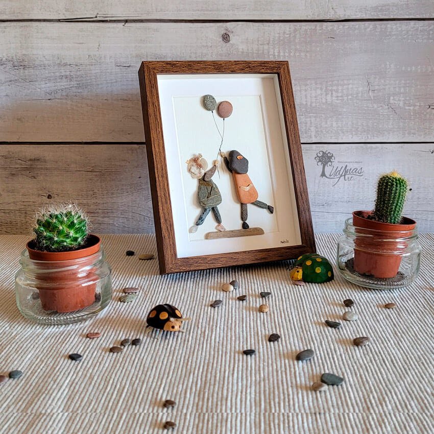 Este cuadro con piedras «Amigas para siempre» es ideal para una decoración infantil original y divertida