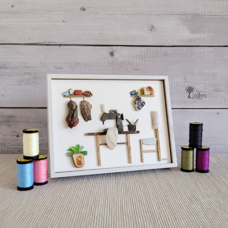 Cuadro con piedras Coser y cantar
