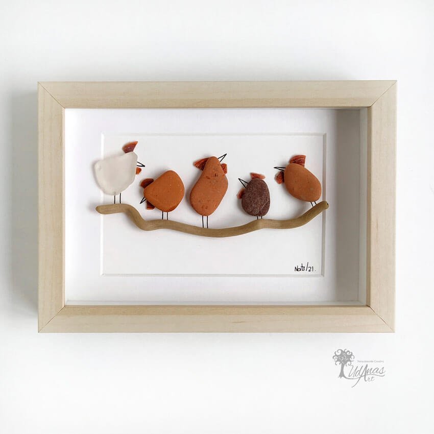 El cuadro con piedras «Friends not food», está hecho a mano en Barcelona.