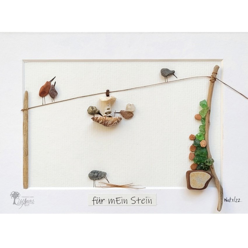 Este cuadro con piedras «für mEin Stein» personalizado, es un cuadro decorativo ideal para amantes de los pájaros y la naturaleza.