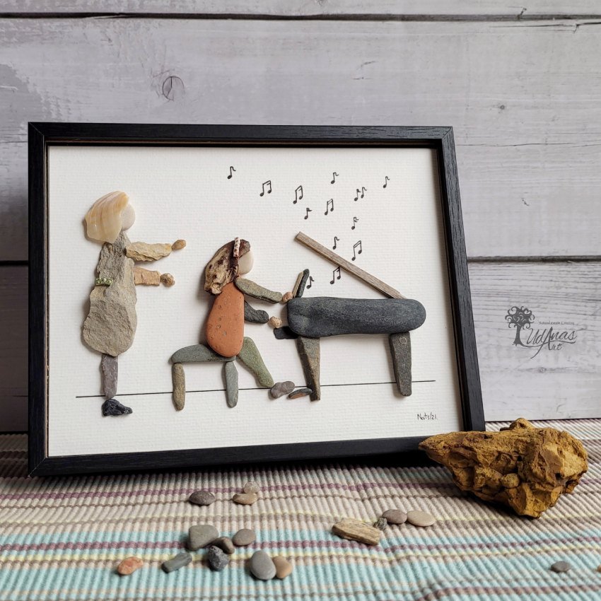 Cuadro con piedras «La profesora de piano», regalo personalizado ideal para una decoración del hogar original
