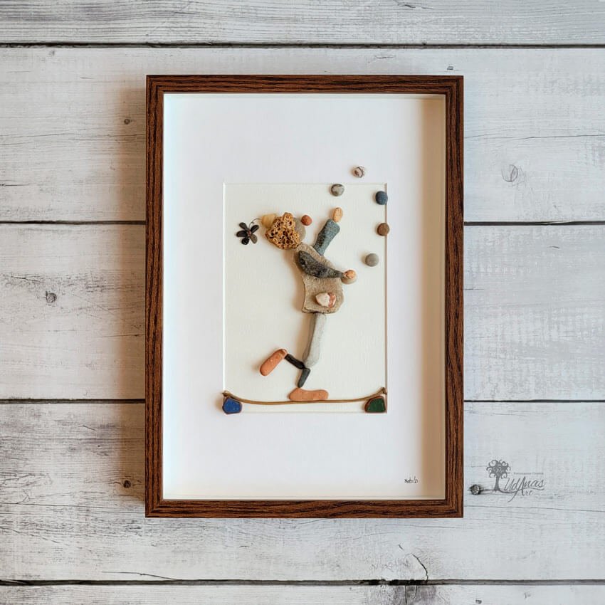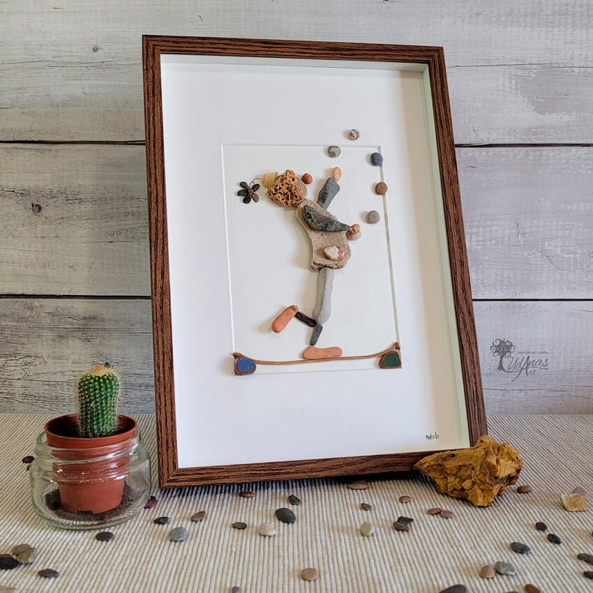 El cuadro con piedras «Malabares», está hecho a mano en Barcelona.